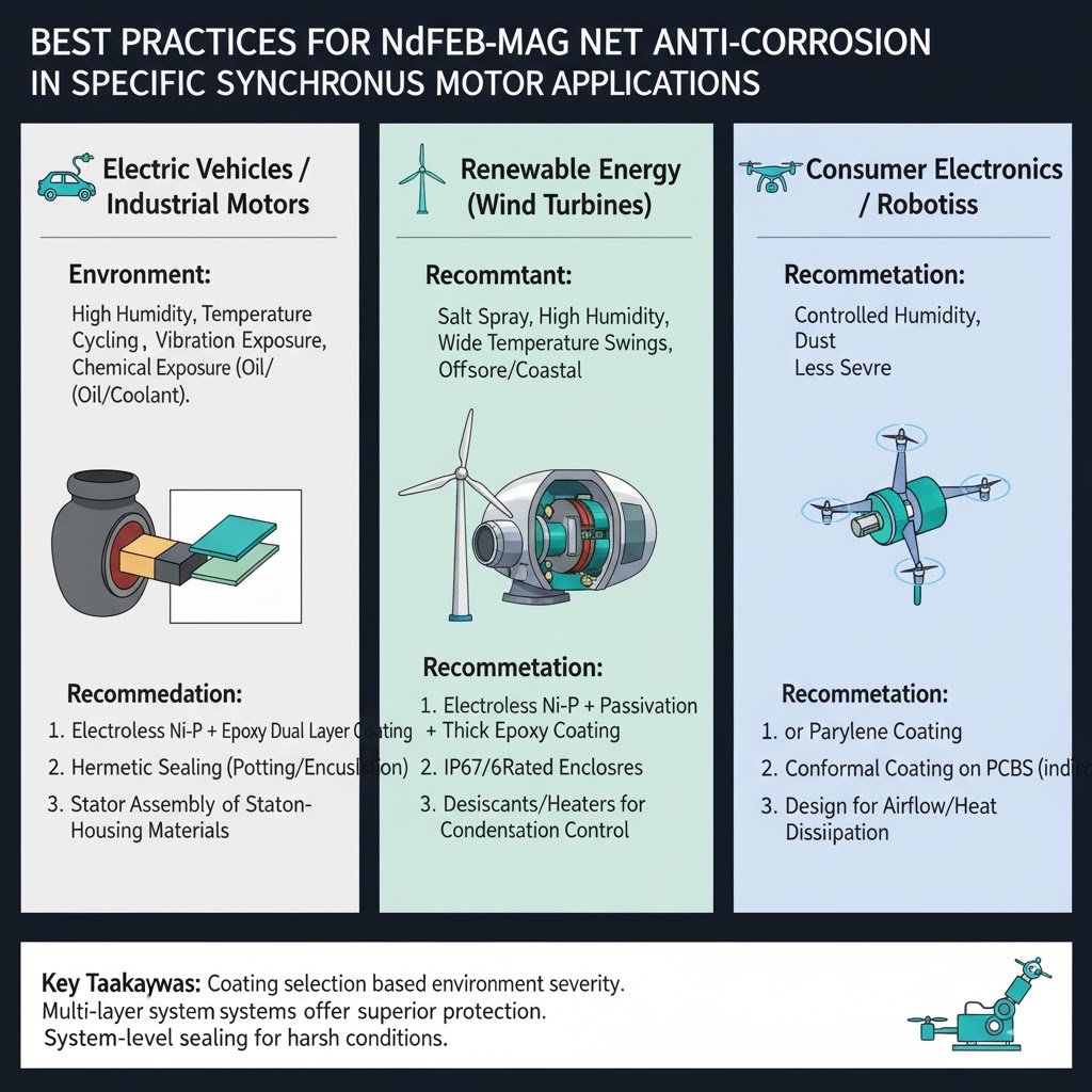 Gesegmenteerd magneetontwerp: Gebruik voor grote rotoren kleine, gesegmenteerde magneten (in plaats van één grote magneet). Als de coating van een segment beschadigd is, blijft de corrosie beperkt tot dat segment (waardoor een volledige rotorstoring wordt voorkomen). Segmenten verminderen ook de thermische spanning (minder uitzetting/samentrekking), waardoor het risico op barsten in de coating afneemt.