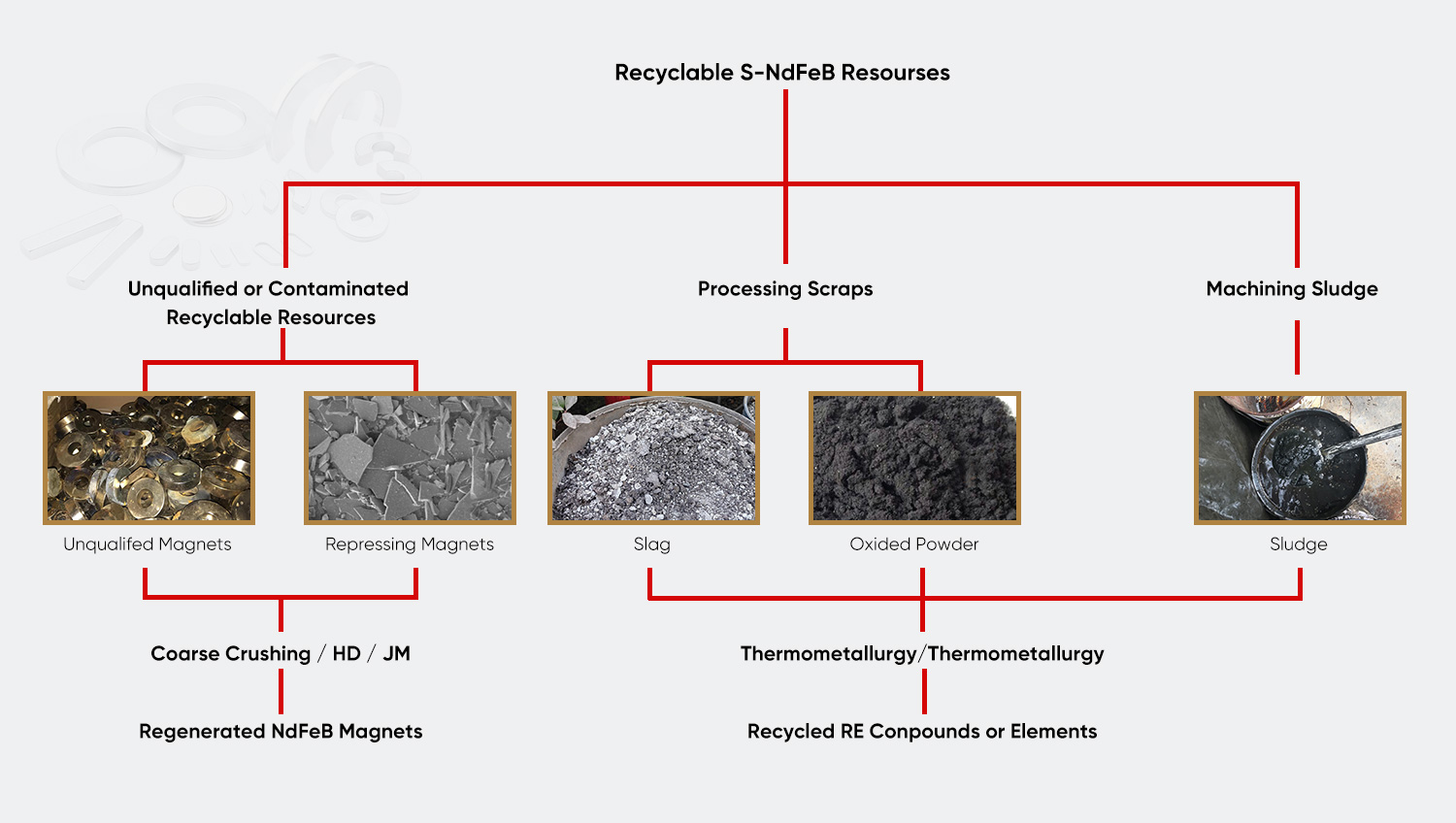 | Magnetische modderrecycling De magnetische modder die wordt geproduceerd door het maalproces van magnetisch materiaal wordt gebruikt om zeldzame aardmetalen te extraheren via een speciaal proces, en het resterende ijzerpoeder kan worden gebruikt als metallurgische grondstof, waardoor een benuttingsgraad van afvalbronnen van meer dan 90% wordt bereikt. | Behandeling van afvalsnijvloeistof Ultrafiltratiemembraanscheiding geavanceerde gecombineerde oxidatietechnologie wordt gebruikt om de olie en het water in de afvalsnijvloeistof te scheiden. De kwaliteit van het behandelde water voldoet aan de GB 8978-1996 emissienorm van het eerste niveau en de oliefase kan worden verfijnd en hergebruikt. | Recyclingsysteem voor afvalvormen Zet een managementsysteem voor de volledige levenscyclus van matrijzen op om reparaties met lasercladding of regeneratie van poedermetallurgie uit te voeren op afgedankte carbide matrijzen, waardoor het recyclingpercentage van matrijsmateriaal wordt verhoogd tot meer dan 60%. |