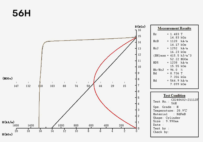 | Temp.Coëff. van Br (omkeerbare temperatuurcoëfficiënt) | -0,09~-0,11%℃ | Temp. Coeff. van Hij | -0,50~-0,60%℃ |
